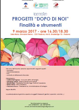 INCONTRO PROGETTI "DOPO DI NOI" 9 MARZO 2017